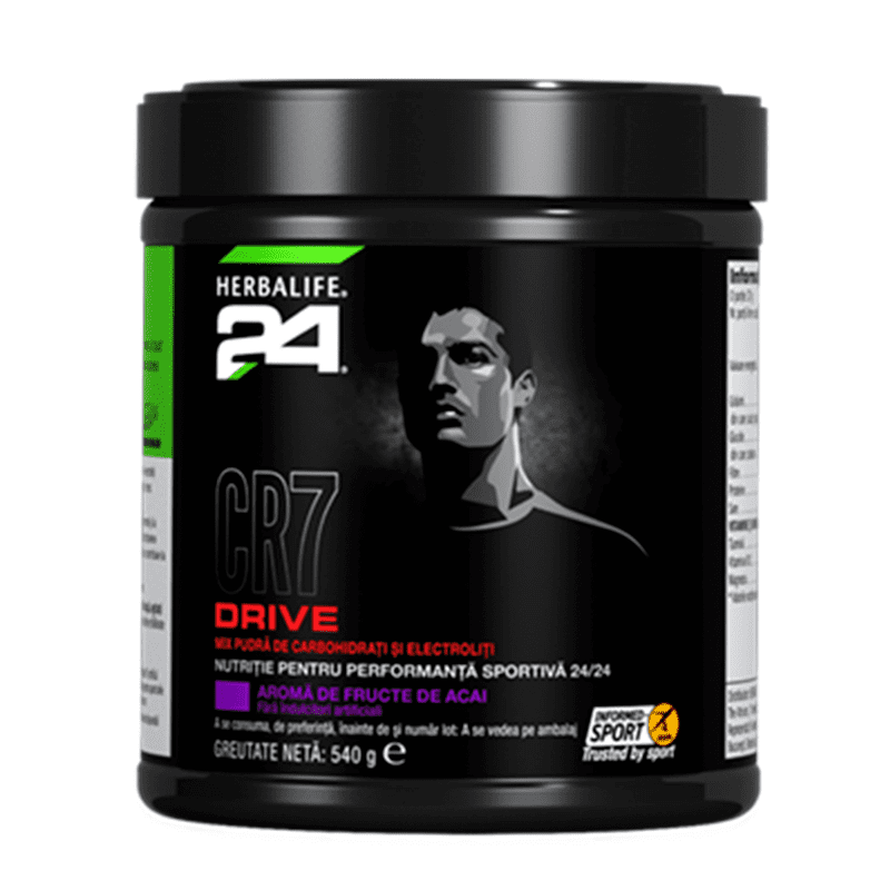 - CR7 Drive este o soluție de carbohidrați-electroliți care s-a demonstrat că îmbunătățește absorbția de apă în timpul activității fizice și ajută la menținerea performanței de anduranță.